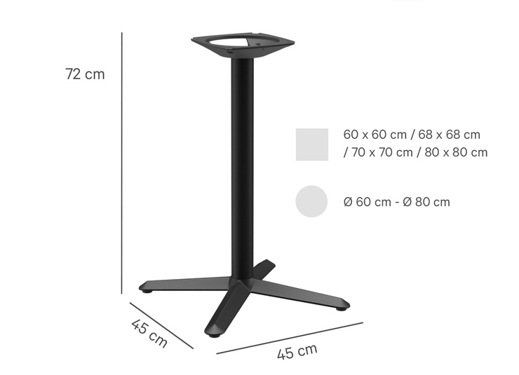 - Secure stand for table tops up to 80 x 80 cm