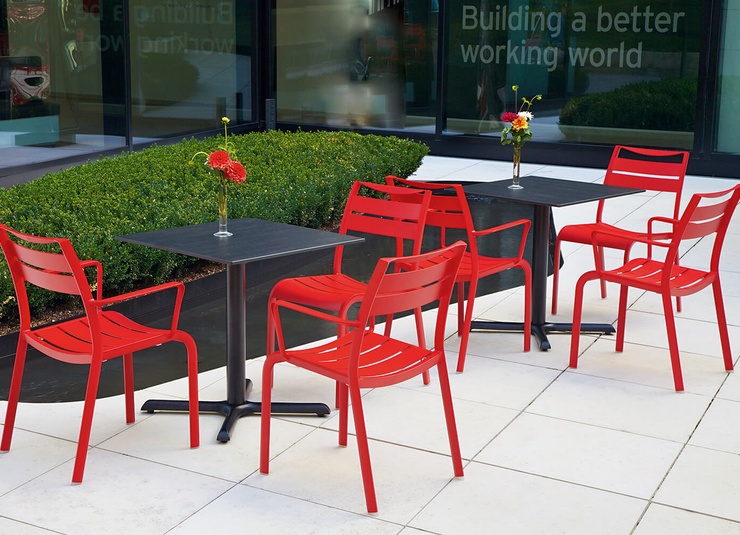 Vario Strong is the first choice when a durable table top is needed for indoor use, but the look and feel of a wooden top should not be missed. The composite tabletop made of the high-density laminate HPL is impact-resistant, easy to clean and robust. Discover now!