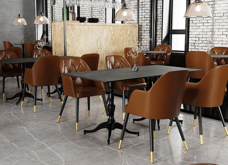 The curved shape of the Tarek table frame in black steel matches both the classic bentwood style and the modern industrial look. Tarek can be combined with round (60 - 90 cm) and square (60 x 60 - 90 x 90 cm) tabletops.Product Code