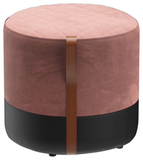 The Panora stool with a sturdy wooden substructure is soft and comfortable, with a quilted seat and a cognac-colored leather carrying strap. Panora is part of the fabric collection and is available in all materials in the collection. The lower part of the stool is always upholstered in black faux leather.Product Code
