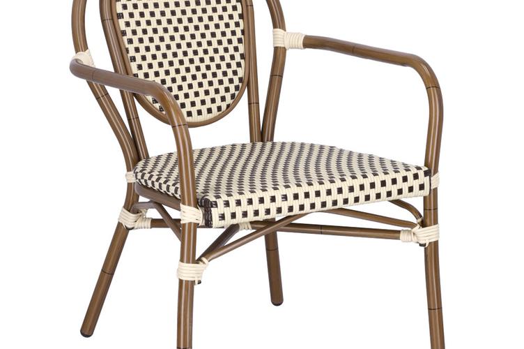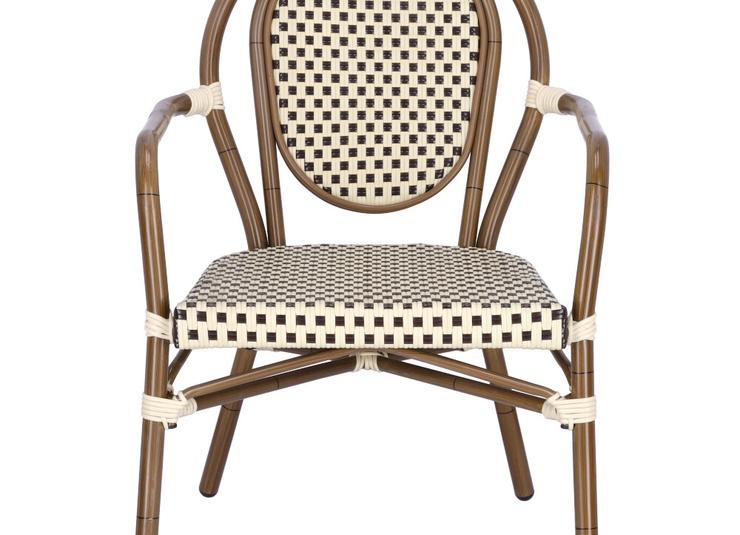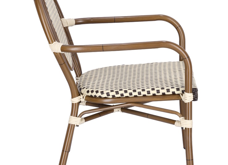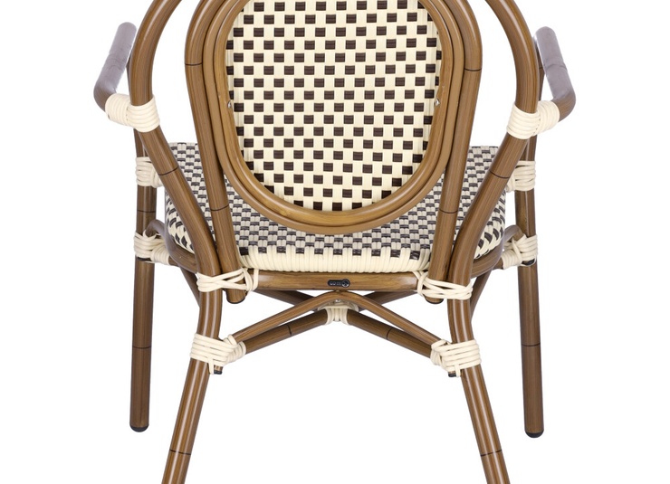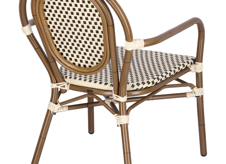 The stackable Marco model delivers Parisian brasserie flair at first glance – with its characteristic shape and harmonious color scheme, it immediately reads as a true café statement in hospitality settings. Designed for professional use, it impresses with strong value for money and materials that perform reliably both outdoors and indoors: rattan-look aluminum meets hand-woven nylon mesh. The weave does not absorb moisture, dries quickly and remains pleasantly easy to maintain. UV-resistant, weatherproof components ensure that Marco continues to look good even in sun, rain and high-traffic environments. Whether as a chair with or without armrests, a 2-seater bench at dining table height, an armchair or a 2-seater element at lounge height – Marco adapts flexibly to your concept. And because all versions are stackable, handling stays just as relaxed as the look.- Parisian flair: Brasserie look that attracts guests and keeps them seated longer