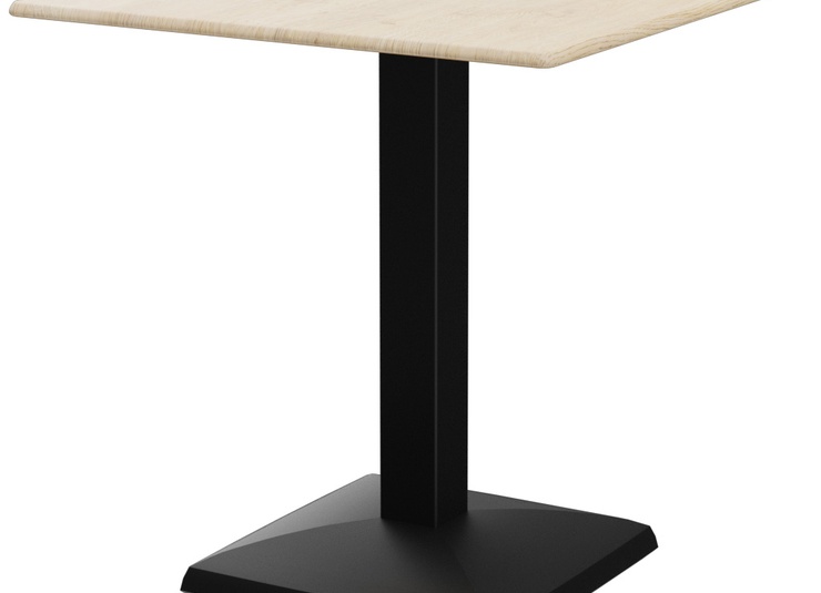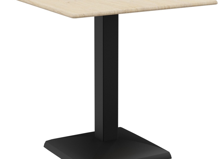 The elegantly shaped square base and square column give Kord a compact and modern look. The black lacquered steel frame can be combined with different tabletops. Kord is available in both dining and standing table heights, with or without FLAT technology, and can also be equipped with a tilting mechanism for space-saving storage. It is suitable for both indoor and outdoor use. Thanks to the hydraulic floor gliders of the FLAT system, the table automatically adapts to uneven floors, ensuring it always stands securely and stably – no more wobbly tables. The patented system reacts instantly to the surface and ensures a firm and consistent position.- Weather-resistant and easy to maintain