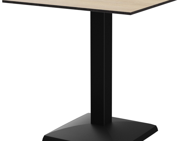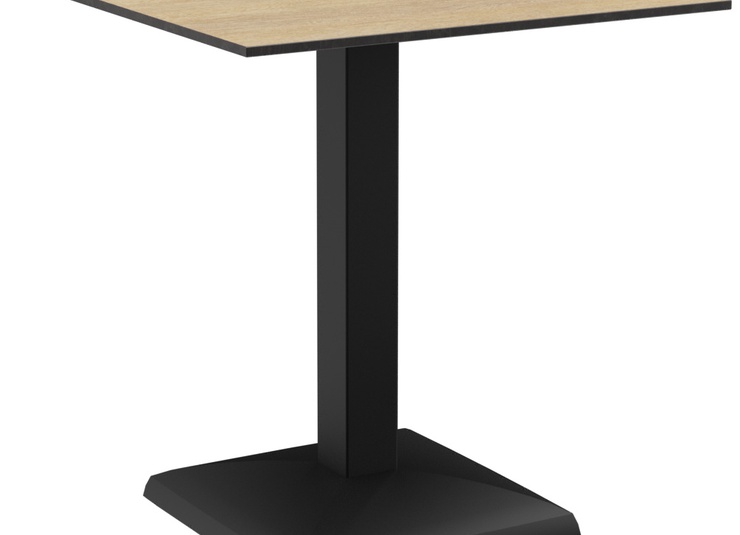 The elegantly shaped square base and square column give Kord a compact and modern look. The black lacquered steel frame can be combined with different tabletops. Kord is available in both dining and standing table heights, with or without FLAT technology, and can also be equipped with a tilting mechanism for space-saving storage. It is suitable for both indoor and outdoor use. Thanks to the hydraulic floor gliders of the FLAT system, the table automatically adapts to uneven floors, ensuring it always stands securely and stably – no more wobbly tables. The patented system reacts instantly to the surface and ensures a firm and consistent position.- Weather-resistant and easy to maintain