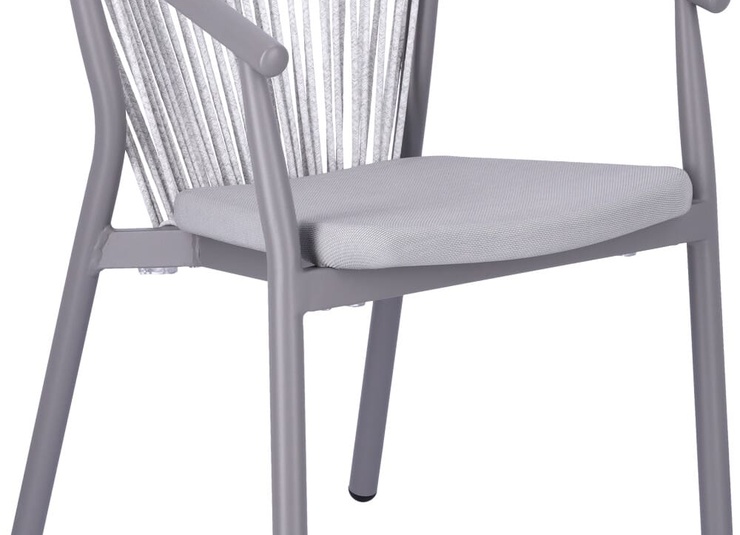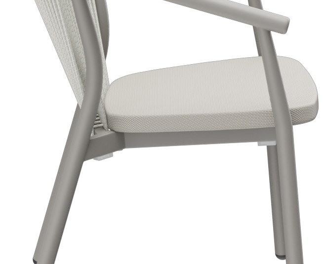 The Zaki outdoor series includes an armchair, a lounge chair and a 2-seater lounge with a powder-coated aluminium frame. All models are stackable, easy to handle and therefore ideal for venues with frequent rearrangements and limited storage space. Seats made of Textilene and backrests made of rope weave are quick-drying and do not absorb water – perfect for continuous outdoor use. The materials are low-maintenance, UV-resistant and weatherproof, keeping maintenance requirements to a minimum. This makes the series particularly suitable for gastronomy, hospitality and demanding contract areas with high frequency.- Stackable, lightweight aluminium frame for flexible handling and space-saving storage.